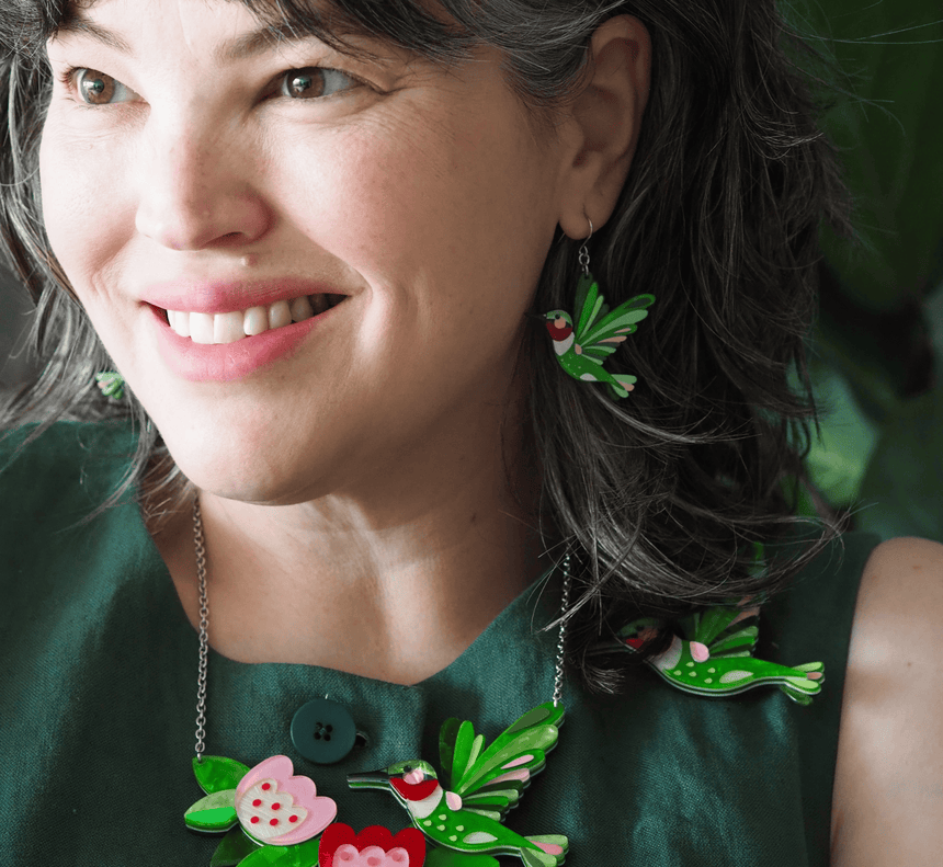 Erstwilder designs are crafted to bring the internal to the external, transforming personal feelings, stories, and nostalgia into limited-run wearable art. Designs can be conversation starters, confidence builders, and hold the power to uplift too - the brooch that feels more like an old friend, the necklace that starts a chat with a stranger, the earrings you wear as your lucky charm.