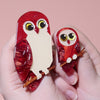 Each piece is hand assembled, hand painted and released in limited quantities. All designs are made from layered resin. As designs are produced from original illustrations and are hand assembled, hand painted and hand finished, there may be minor differences from piece to piece, making each as unique as the those who wear them. Metal components used in creating this piece include a beautiful and strong silver-plated steel brooch pin. Any earring posts, earring hooks, necklace chains and jump rings used for this piece are made from stainless steel.