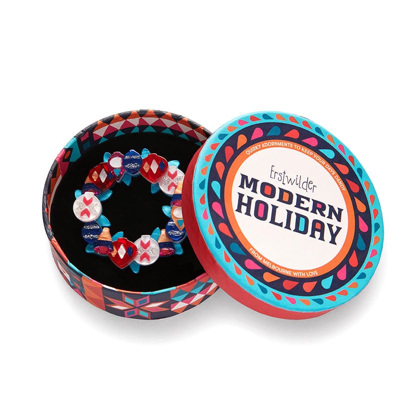 The quintessential symbol of Christmas, this weath inspired brooch from the Modern Holiday collection has been hand-assembled from a mix of colourful textured resins with inset pieces and hand painted detailing. Love this design? You'll also find it available as an enamel pin and an enamel tree ornament.