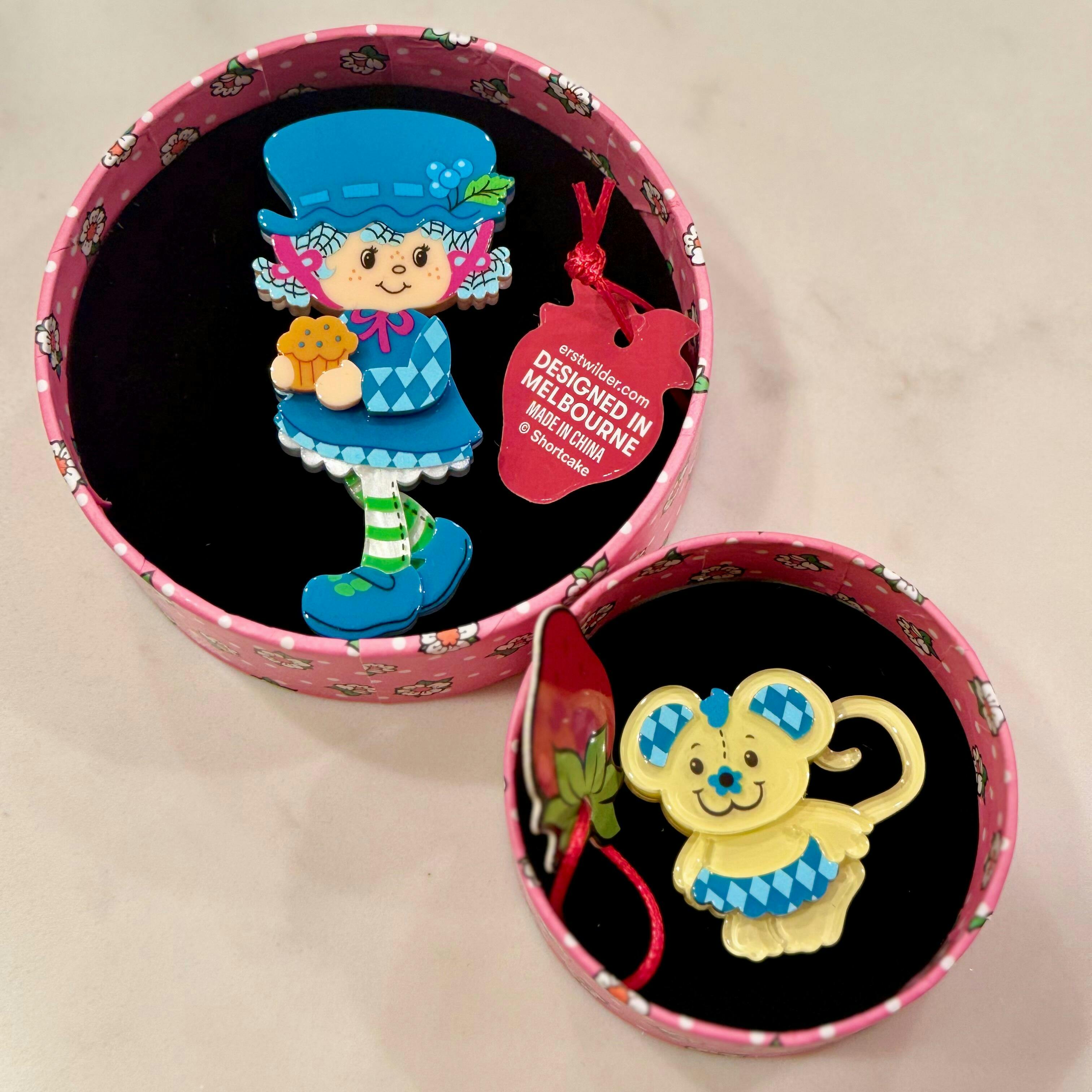 This nostalgic Blueberry Muffin Brooch from our second Erstwilder x Strawberry Shortcake collection brings the gentle dreamer to life, muffin in hand and heart on sleeve. Limited-run and crafted from layered resin with hand-painted and printed details, she’s a sweet reminder that imagination makes everything better. Wear Blueberry alone or pair with her bestie, Cheesecake the mouse. Love this design?