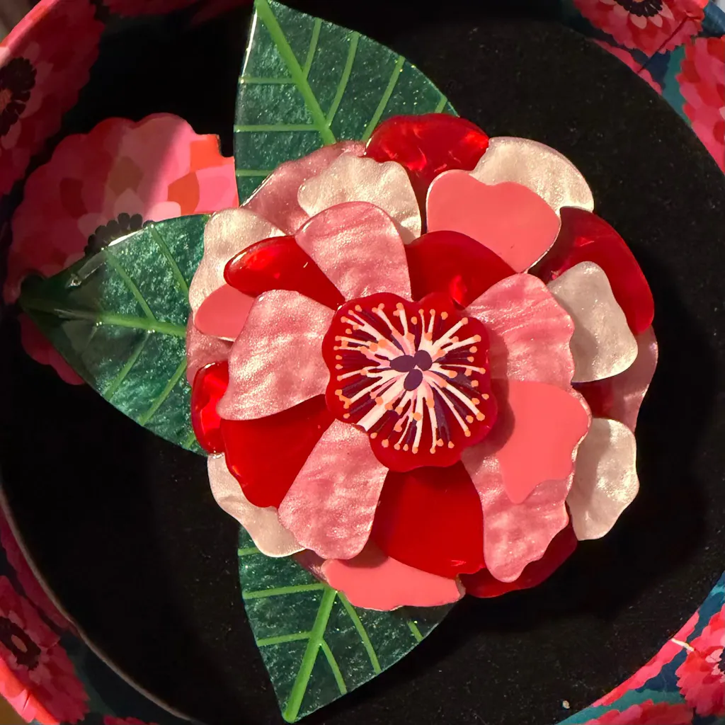 Timeless elegance meets heartfelt sentiment in this exquisite and limited-run Camellia brooch. Hand-assembled from a selection of refined resins and adorned with delicate printed and painted details, this design celebrates love and admiration. A symbol of devotion, gratitude, and grace, the camellia is a meaningful keepsake—whether it reminds you of a cherished moment, a beloved person, or the simple joy of nature’s artistry.