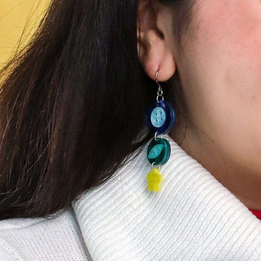 Crafternoons just got a whole lot more rounded with these captivating cluster of button drop earrings. Hand-crafted from colourful resins, this sea of outfit securers is also available as a sensational statement necklace and matching brooch!