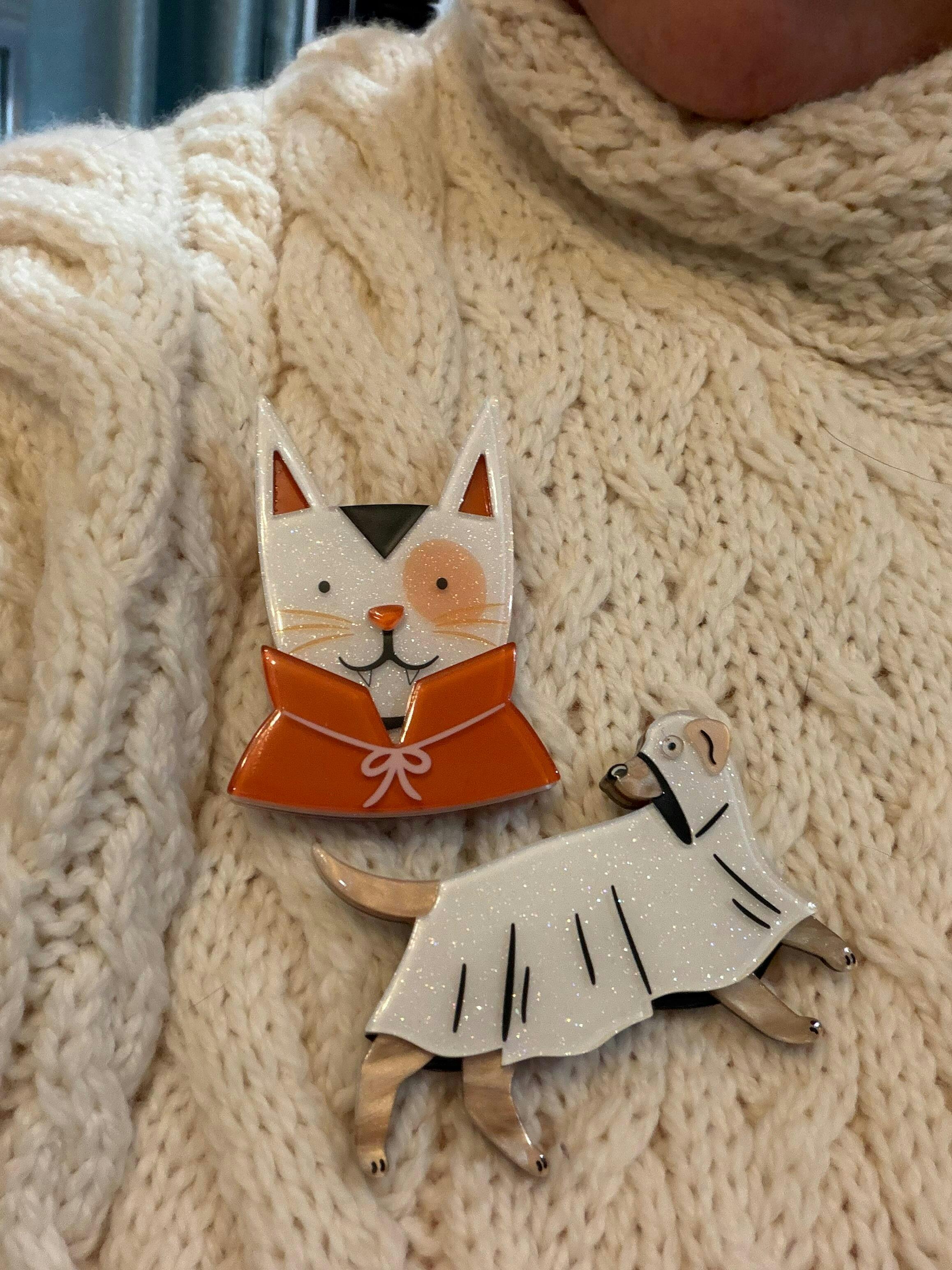 Brooch clasps are made with a 100% stainless steel pin and plated brass screws. Please note, components change over time and may be made with other materials. If you have any specific design questions, please email the team at hello@erstwilder.com.