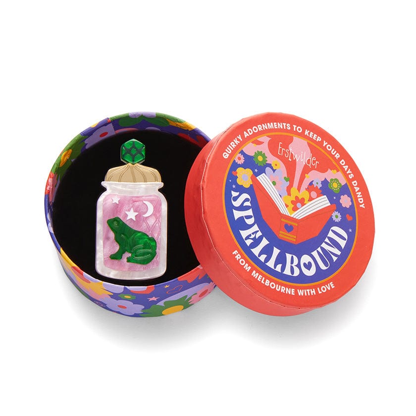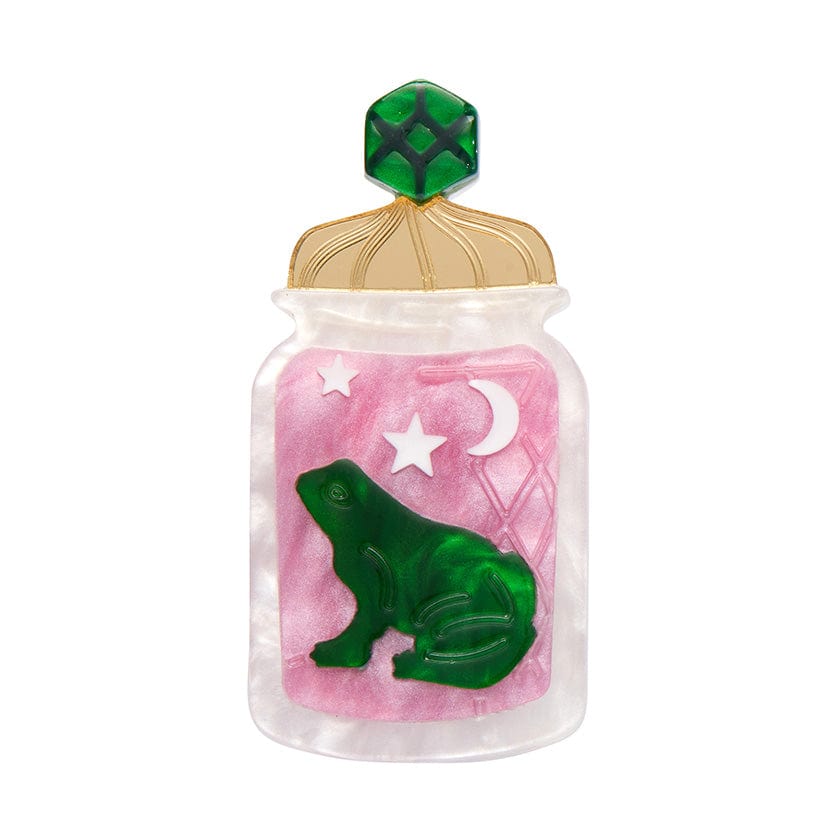 Fall in love with this transformative Growth Eternal frog brooch. This wearable art accessory has been hand-assembled from a selection of stand-out resins. Part of our Spellbound release, this frog-in-a-jar mini brooch features a combination of hand-painted and laser-etched details making it an evolutionary Halloween wardrobe enhancement.