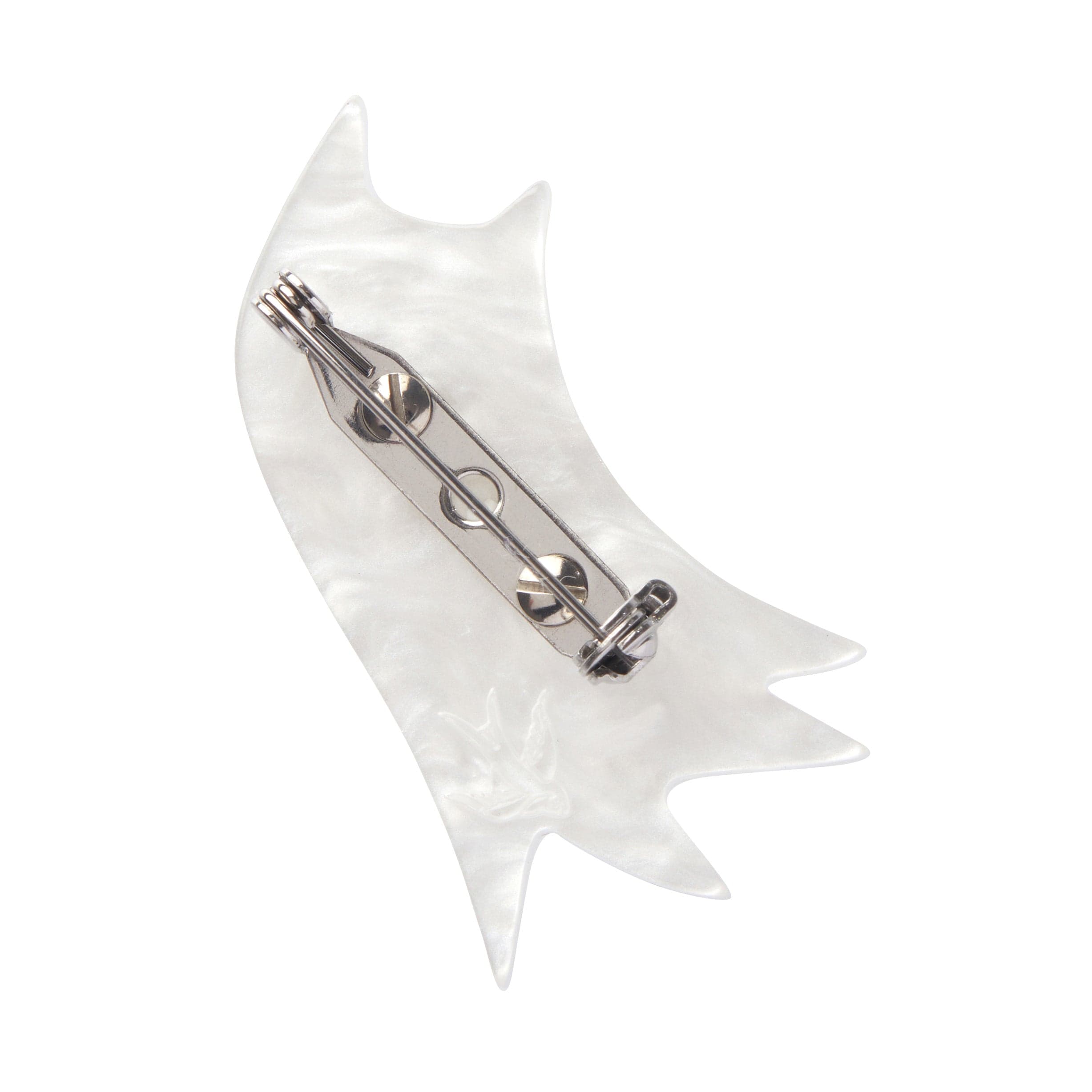 Brooch clasp is made with 100% stainless steel pin and plated brass screws. Components have changed over time and older designs may be made with other materials. If you have any questions at all, please email the team at hello@erstwilder.com.