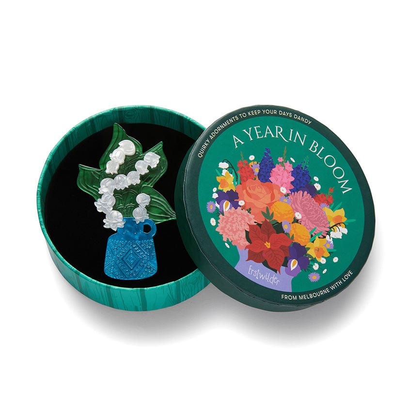 Celebrating A Year in Bloom, the resplendent green and white resins that bring this lovely lily of the valley brooch to life have been carefully hand-assembled and finished with laser-etched details. As the birth flower for the month of May, these bell-shaped beauties are perfect for perennial groundcover.