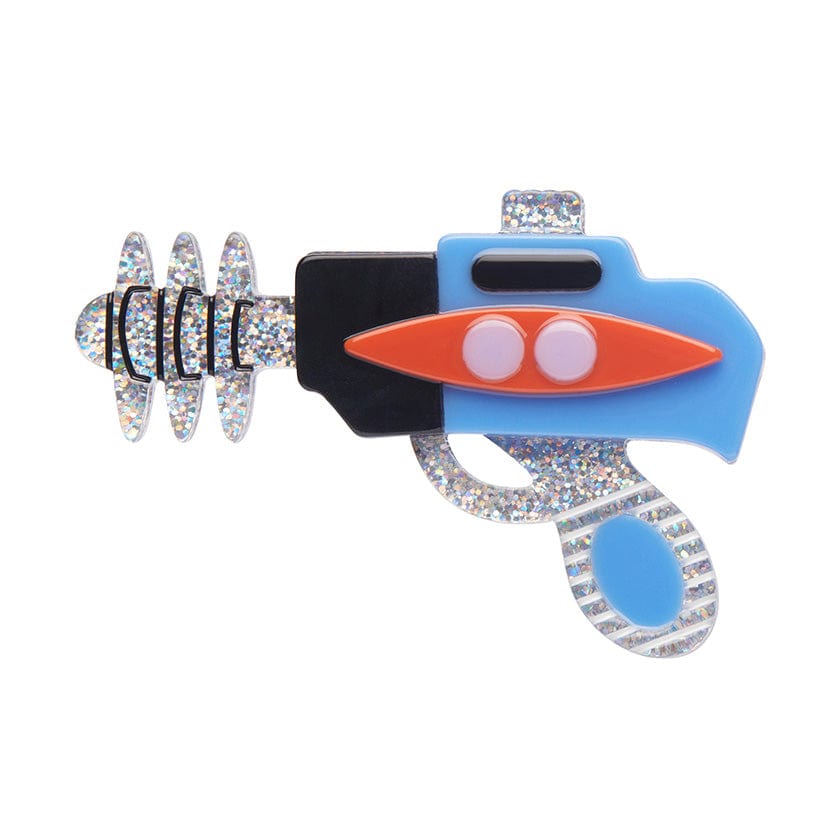 A diversity of delightful resins bring this hand-assembled harmless blaster brooch to life. Part of our Mission to the Moon range of out of this world accessories, Pew Pew takes design inspiration from 1960s futurism, with some added Erstwilder quirk, and can be worn together with our Space Chic Souvenirs Double Brooch when venturing to distant corners of the galaxy.