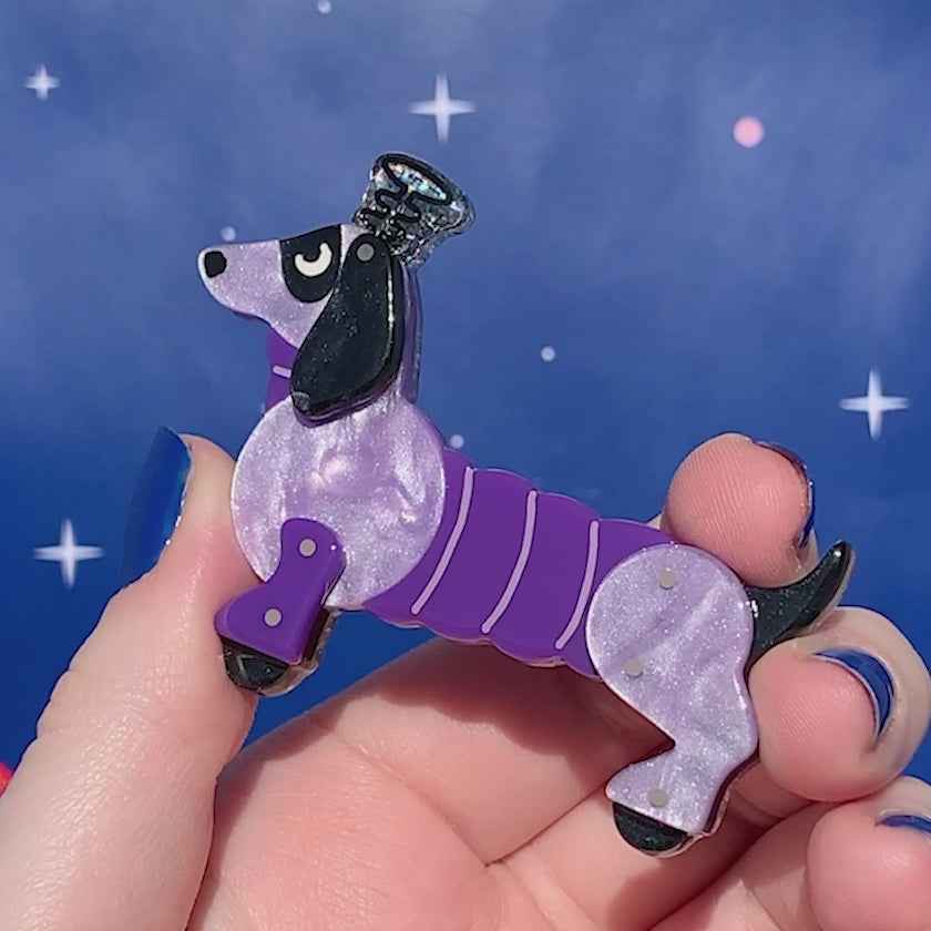 A catalogue of charming resins bring this hand-assembled robot puppy dog brooch to life. Part of our Mission to the Moon range of out of this world accessories, Robo Spiffy takes design inspiration from 1960s futurism, with some added Erstwilder quirk, and can be worn together with our Daring Dogmonaut Brooch or any of the other Spiffy the Sausage Dog designs from collections past.
