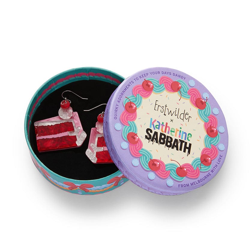 Designed as part of our collaboration with Australia's Queen of Cakes Katherine Sabbath, and inspired by one of her real creations, these limited-run Romance Isn't Dead Cake Drop Earrings are (almost) good enough to eat! Hand-assembled from a selection of bubble and glitter resins, completed with etched and printed detailing, you'll also find this tasty treat available as a brooch, while stocks last!
