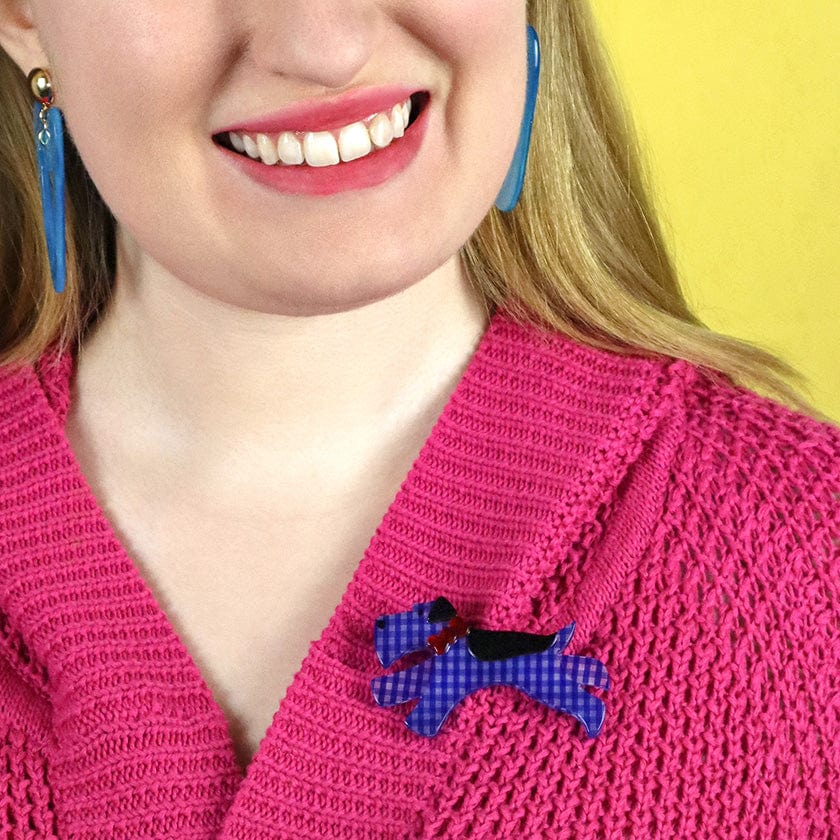 This 2023 Fan Favourites edition of our Run Scottie, Run! brooch has been hand-assembled from pleasant patterned and solid resins and brought to life with hand-painted details. Originally released in 2012, this is the 7th edition of our sensational Scottish terrier.