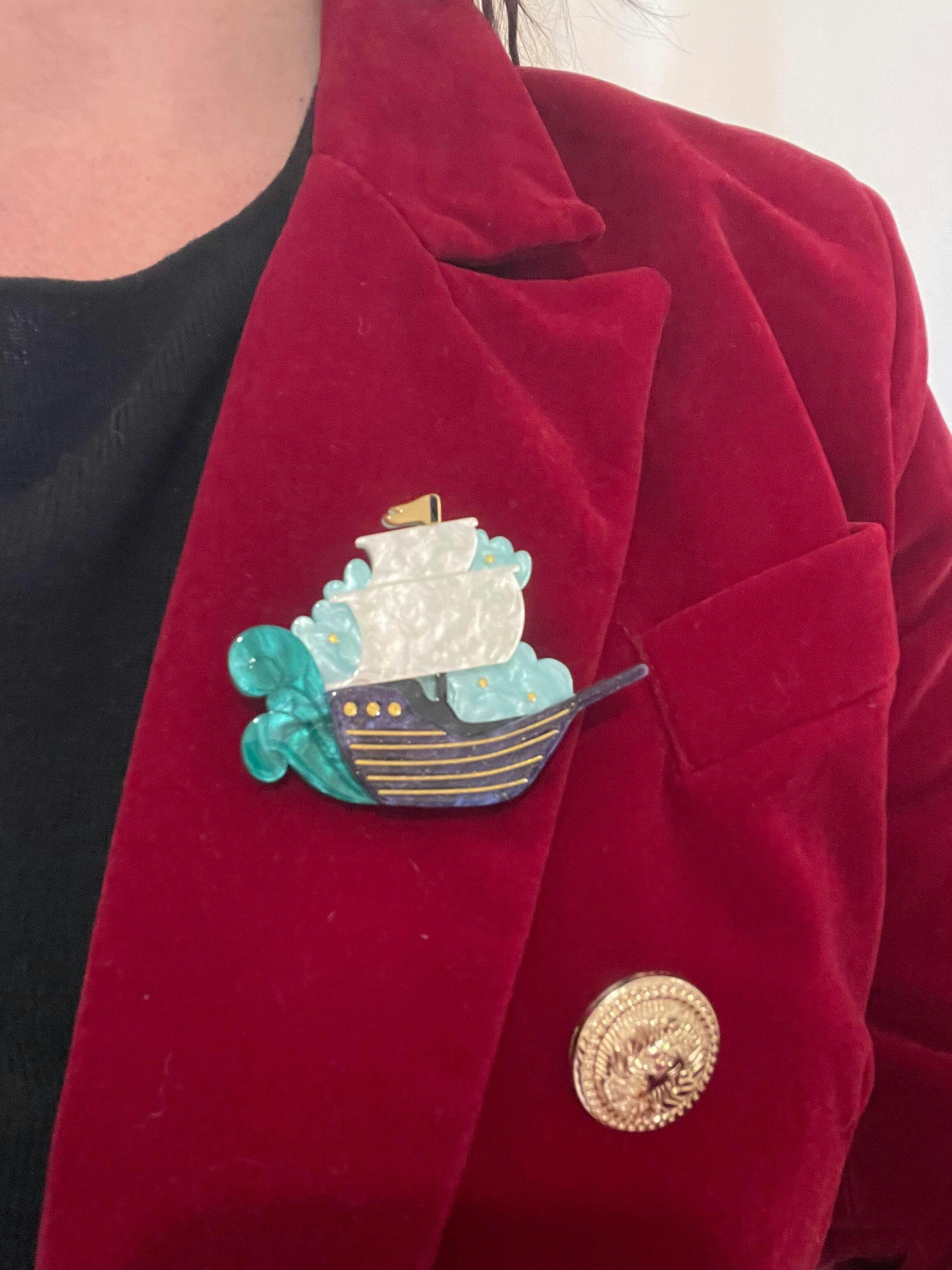 Brooch clasps are made with a 100% stainless steel pin and plated brass screws. Please note, components change over time and may be made with other materials. If you have any specific design questions, please email the team at hello@erstwilder.com.