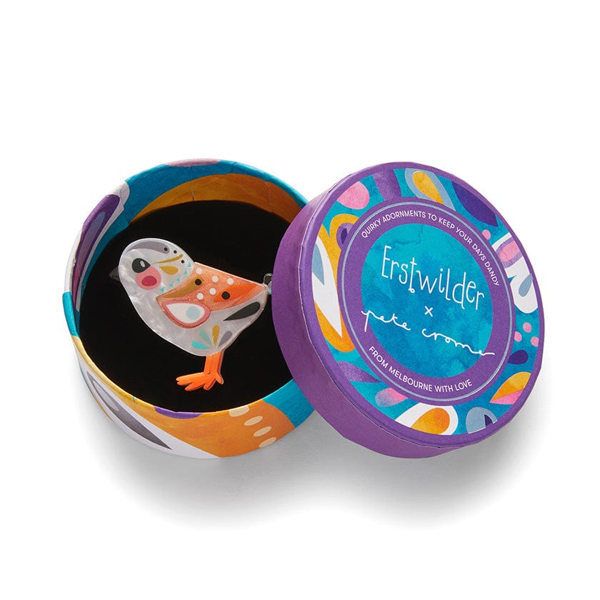 Engaging, hand-assembled resins bring this bouncy baby Sandpiper mini brooch to life. It exudes an endearing smallness that adds an extra touch of charm when pinned to your favourite outfit. Part of the Pete Cromer Australian Sea Life collection, this marine bird makes a compelling companion piece when paired with any of the other awesome designs in this collection.