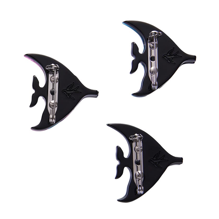 Angel fish may look angelic but in fact, they're quite aggressive! Irrespective of their behaviour in the wild you'll find this darling school of resin fish will only ever be aggressively stylish! This set of brooches is a part of our long-awaited collaboration with Aboriginal Artist Melanie Hava. Layered resin and hand-finished details make these elegant and elevated mini brooches the perfect accessories when worn or individually or as a school.