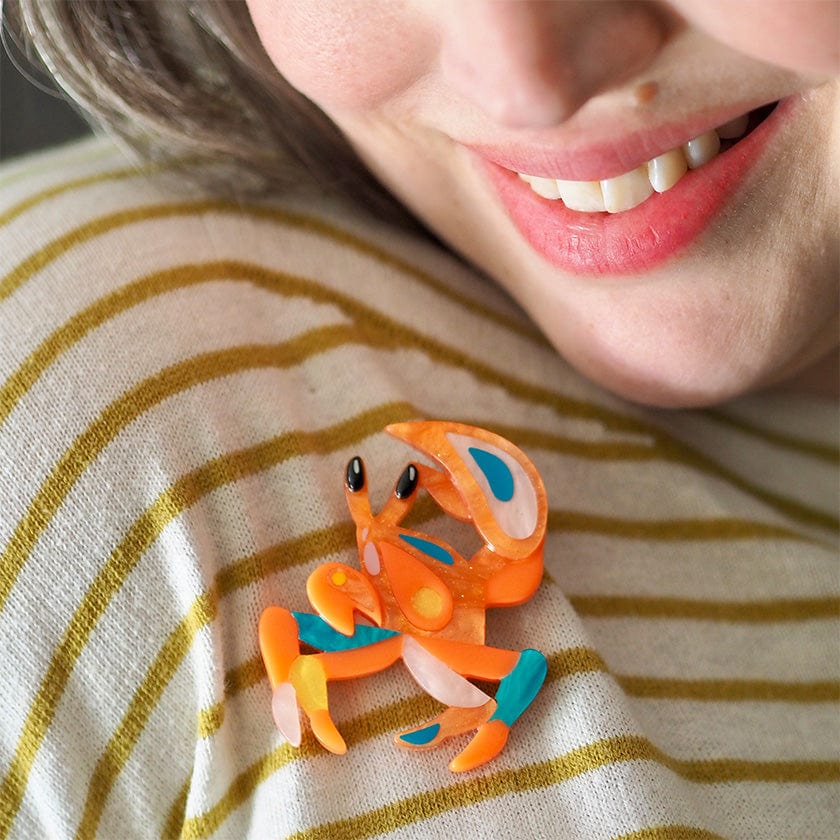 Arresting, hand-assembled resins bring this Golden Ghost Crab brooch to life, its reclusive nature forgotten for the moment when pinned to your favourite outfit. Part of the Pete Cromer Australian Sea Life collection, this midnight marauder makes a compelling companion piece when paired with our starfish-inspired Essential earrings or any other designs from the range.