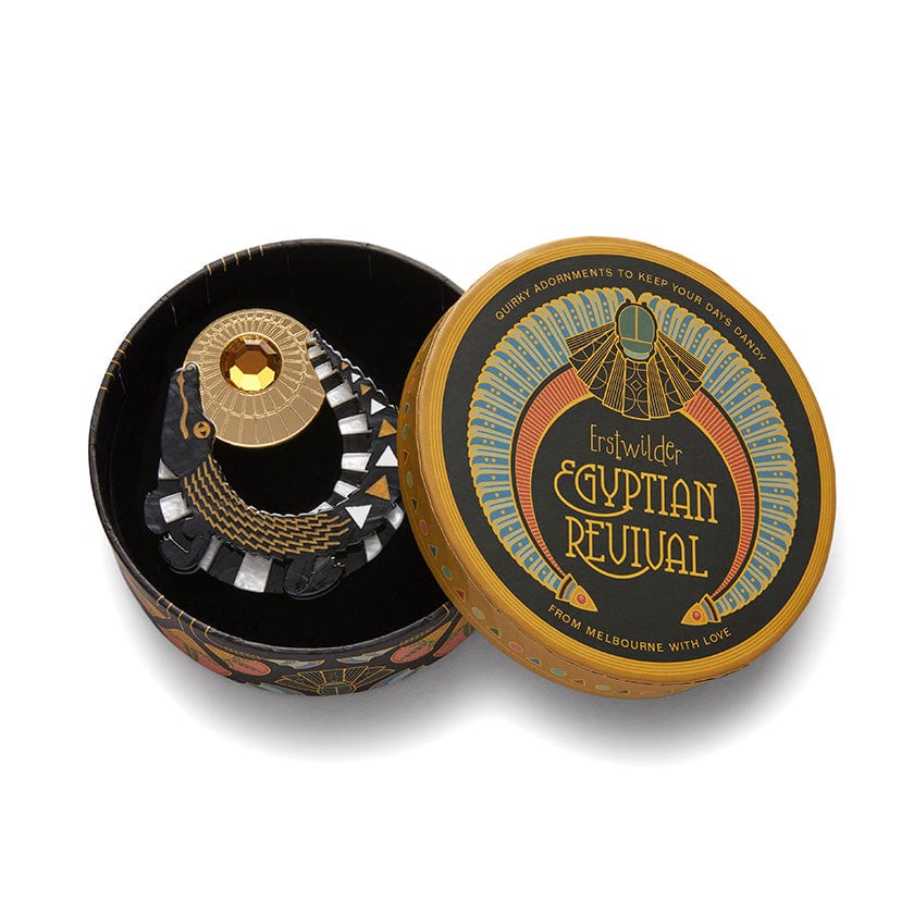 A fitting representation of the idea that to nurture a garden is to feed not just the body, but the also the soul, this Nile Crocodile brooch is part of our Egyptian Revival collection. Inspired by all things Ancient Egypt, as filtered through the lens of Art Deco design, this glorious brooch is brought to life with textured resins complete with hand-painted detail and features a gorgeous gold mirror resin specifically chosen for this release and a beautiful Czech glass gemstone at its heart. It pairs perfectly with any of our Most Sacred Bird Ibis brooch and any of our All-Seeing Eye of Horus designs.