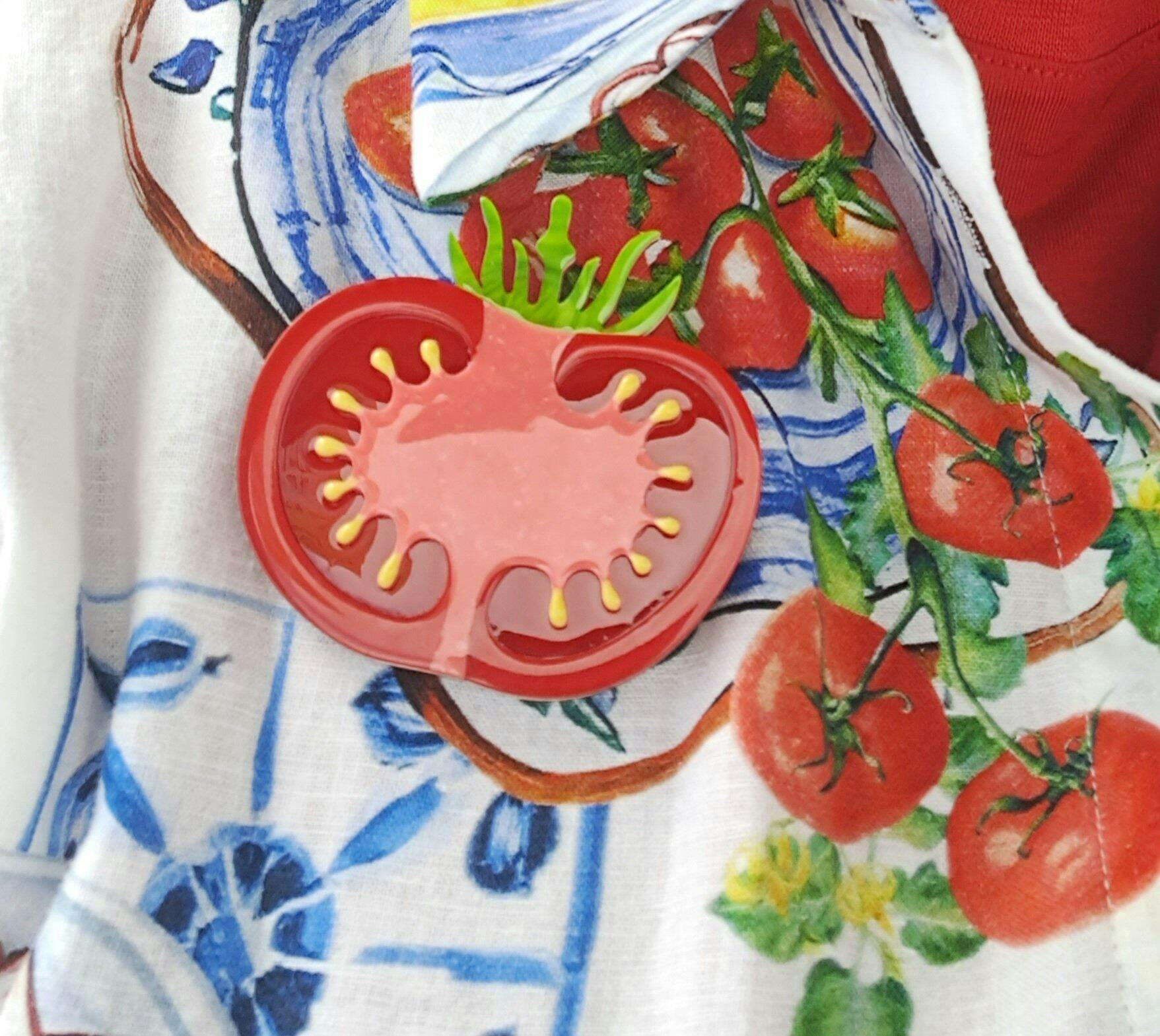 Juicy, glossy, and practically bursting with charisma, this brooch is a love letter to the everyday tomato. A limited-run piece of wearable art from the In Praise of Veg collection, created in celebration of Alice Zaslavsky’s globally adored cookbook that reminds us: the simplest things are often the most delicious.