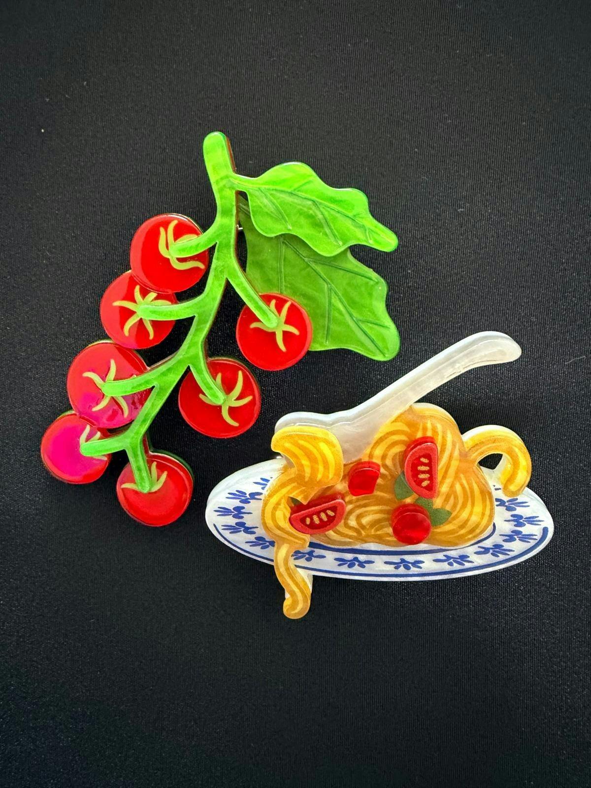 Tomato lovers, rejoice! These tomatoes are as fresh as they come, and far too pretty to puree. This juicy little cluster of wearable art is part of the In Praise of Veg collection, created in celebration of Alice Zaslavsky’s bestselling cookbook and her mission to help the world fall back in love with veg, one tomato at a time.