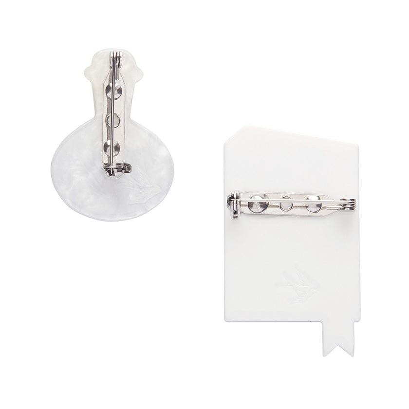 Brooch clasps are made with a 100% stainless steel pin and plated brass screws. Please note, components change over time and may be made with other materials. If you have any specific design questions, please email the team at hello@erstwilder.com.